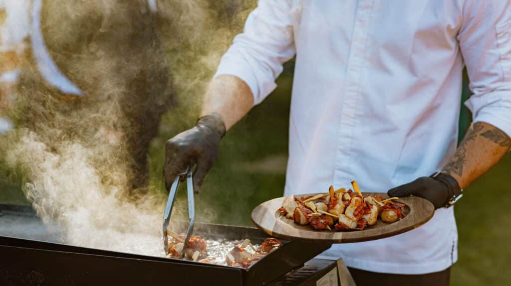 Pour un mariage à Toulouse, nous préparons une large gamme de plats délicieux et variés. Nos chefs cuisiniers créent des buffets composés de viandes, de poissons, de salades fraîches, et de desserts gourmands. Nous proposons également des cocktails dînatoires pour votre vin d’honneur avec des bouchées créatives, ainsi que des repas de mariage avec des plats chauds et froids. Chaque plat est préparé avec soin en utilisant des produits frais et de saison.