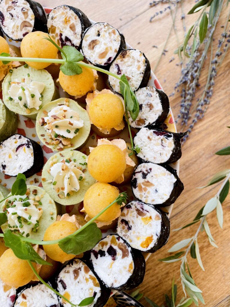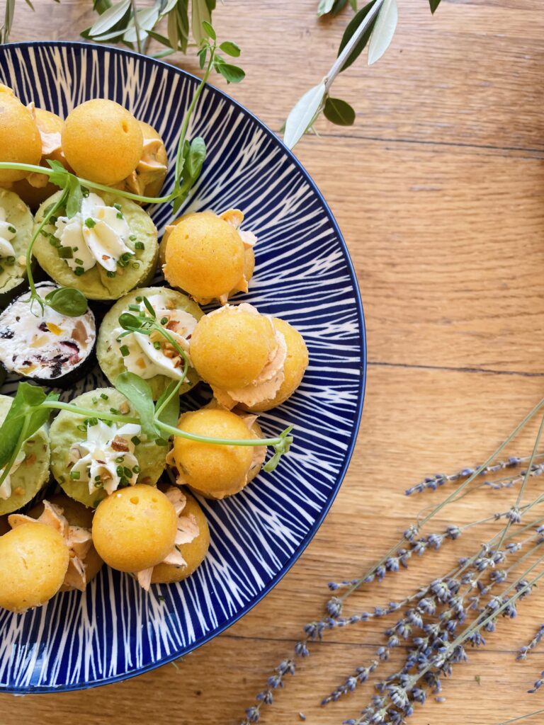 Nos chefs ont imaginé un cocktail apéritif haut en couleur : gaspacho au chorizo, nougat de chèvre, velouté glacé de petits pois, pastèque chèvre-basilic… Des bouchées raffinées, pensées pour mélanger plaisir et équilibre, le tout avec des produits frais et de saison.