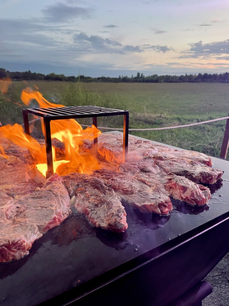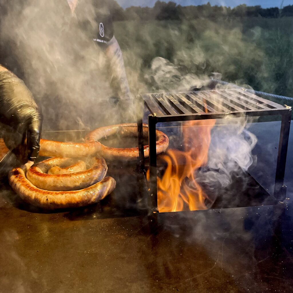 Nous avons donc imaginé un format debout, façon cocktail dînatoire, mais dans une ambiance encore plus décontractée et surtout CANAILLE. Alors pour surprendre les invités, nous avons proposé : un brasero en plein cœur de la soirée !